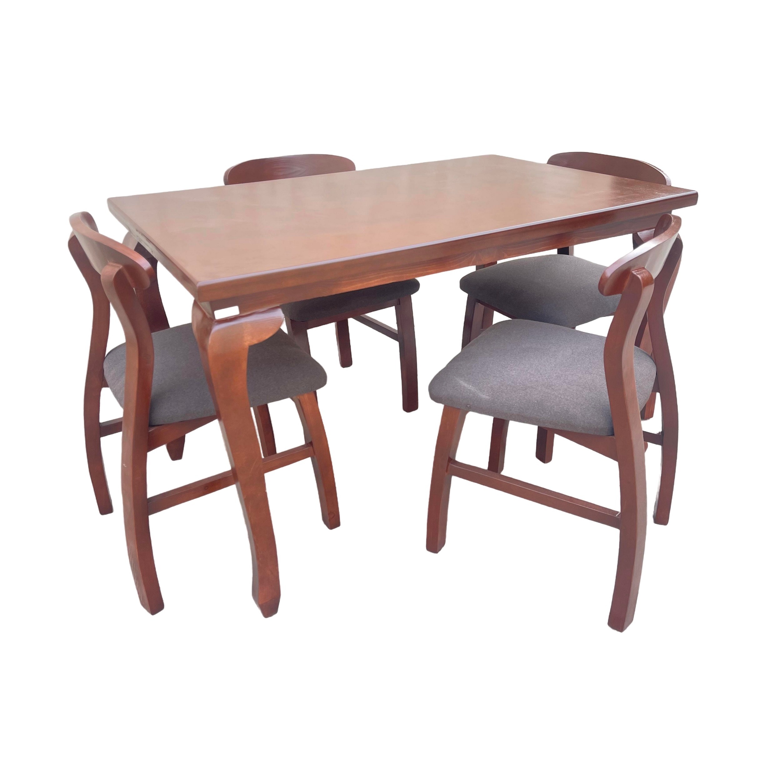 میز فوق از جنس چوب راش گرجستان با صفحه mdf میباشد رنگ قسمت های چوبی میز و صندلی ها در تمام سفارشات ارسالی ثابت میباشد که مطابق عکس ارسال میشود و تنوع انتخابی شما مربوط به رنگ پارچه نشیمنگاه میباشد.