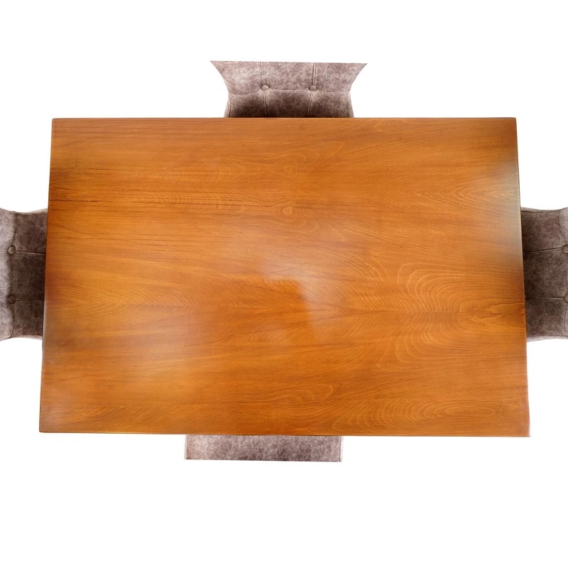 میز فوق از جنس چوب راش گرجستان با صفحه mdf میباشد رنگ میز و صندلی ها در تمام سفارشات ارسالی ثابت است که مطابق عکس ارسال میشود میز دارای ۲قسمت جدا شونده شامل پایه و صفحه میز میباشد.