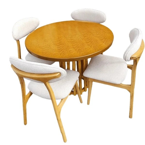 این سرویس غذاخوری محصولی لوکس و لاکچری می باشد. بسیار زیبا و کم جا و سبک مناسب همه نوع منزلی. به همراه صندلی های کم جا مدرن و سبک وزن. این محصول با تلفیقی از طرح های مینیمال طراحی و ساخته شده است. پایه ها ، صفحه و صندلی های این سرویس شیک ، از چوب سوپر راش گرجستان ساخته شده است و از کیفیت و دوام بالایی برخوردار دارد. روکش صفحه این میز از MDF اعلاست. جنس زیرکار فوم 4 سانت 35 کیلویی چوب راش سوپر گرجستان در بازار ایران جزو مرغوب ترین چوبهای موجود وارداتی از کشور گرجستان می باشد . این نوع چوب به واسطه ی کیفیت خوبی که دارد ، قیمت به نسبت بالاتری نسبت به چوب های درجه ی 2 و 3 شامل می شود . چوب راش به چوبی اتلاق داده می شود که در شمال کشور رشد می کنند و جنگل های مرطوب ، زیست گاه این نوع از درختان می باشد . چوب راش موجود در بازار به انواع چوب راش آلمانی ، چوب راش گرجستان و چوب راش ایرانی تقسیم می شوند و برای استفاده در صنایع مختلف چوبی ، مبلمان ، میز و صندلی و … قرار می گیرند. قطر درخت راش گاهی تا 2 متر و ارتفاع آن سی الی سی و پنج متر میشود . چوب راش در ساخت مبلمان کاربرد زیادی دارد و دارای رنگ کرم مایل به قرمز می باشد. و همچنین در برابر حشرات و قارچها مقاوم است . چوب راش از طریق کشور دوست و همسایه گرجستان وارد کشور می شود که نبستا کیفیت بهتری نسبت به چوبهای داخلی دارد و اندازه های آن بزرگتر است و قطر آنها بیشتر . رطوبت بیشتر این نوع چوب وارداتی موجب کیفیت بهتر آن شده است . چوب راش در بازار ایران در انواع کوتاه و بلند ، چوب راش سوپر و درجه ی 2 و درجه ی 1 موجود می باشد که کیفیت این نوع چوب بسته به میزان ترک های موجود در تخته ها و الوار های چوب میزان گره های موجود می باشد . به طور معمول درجه های پایین تر دارای ترک های بیشتر و نهایتا پرت ( دور ریز ) بیشتری می باشد و همچنین قیمت کمتری نیز دارد