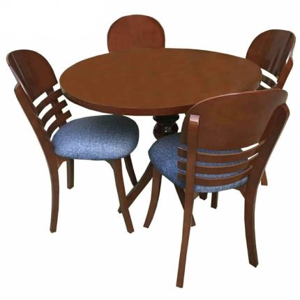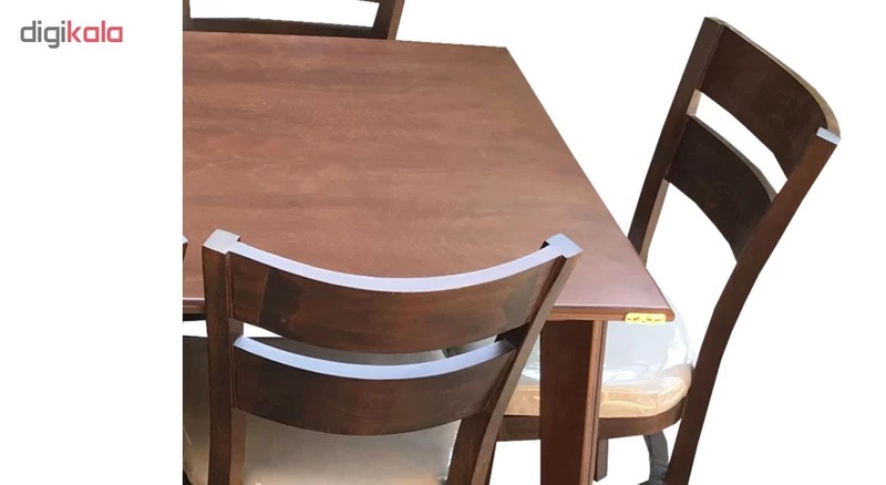 میز فوق از جنس چوب راش گرجستان با صفحه mdf میباشد رنگ قسمت های چوبی میز و صندلی ها در تمام سفارشات ارسالی ثابت میباشد که مطابق عکس ارسال میشود و تنوع انتخابی شما مربوط به رنگ پارچه نشیمنگاه میباشد.
